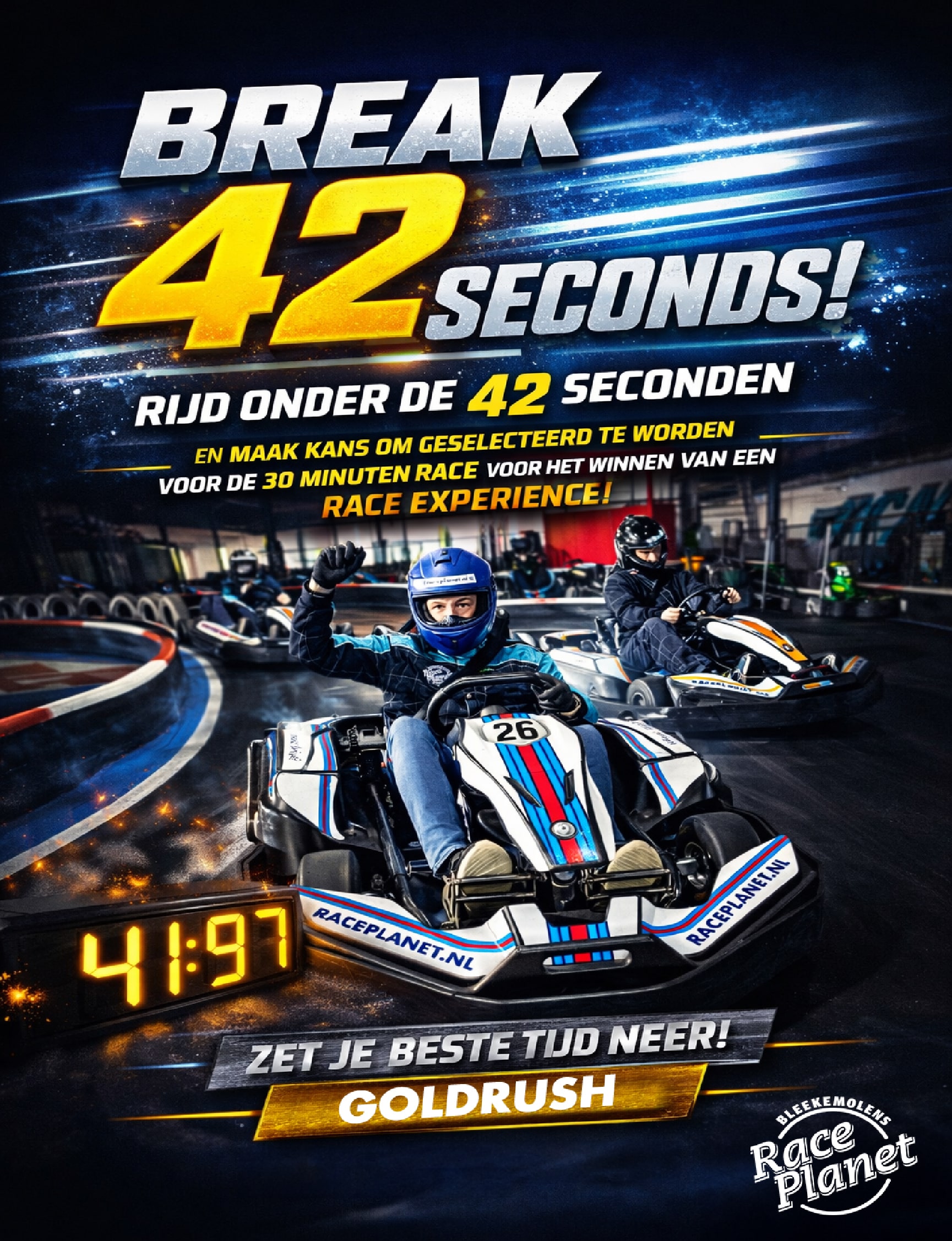 Durf jij de uitdaging aan? Zet je beste tijd neer, push jezelf tot het uiterste en laat zien dat jij onder de 42 seconden kunt rijden.