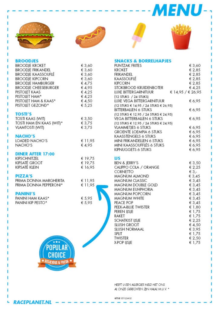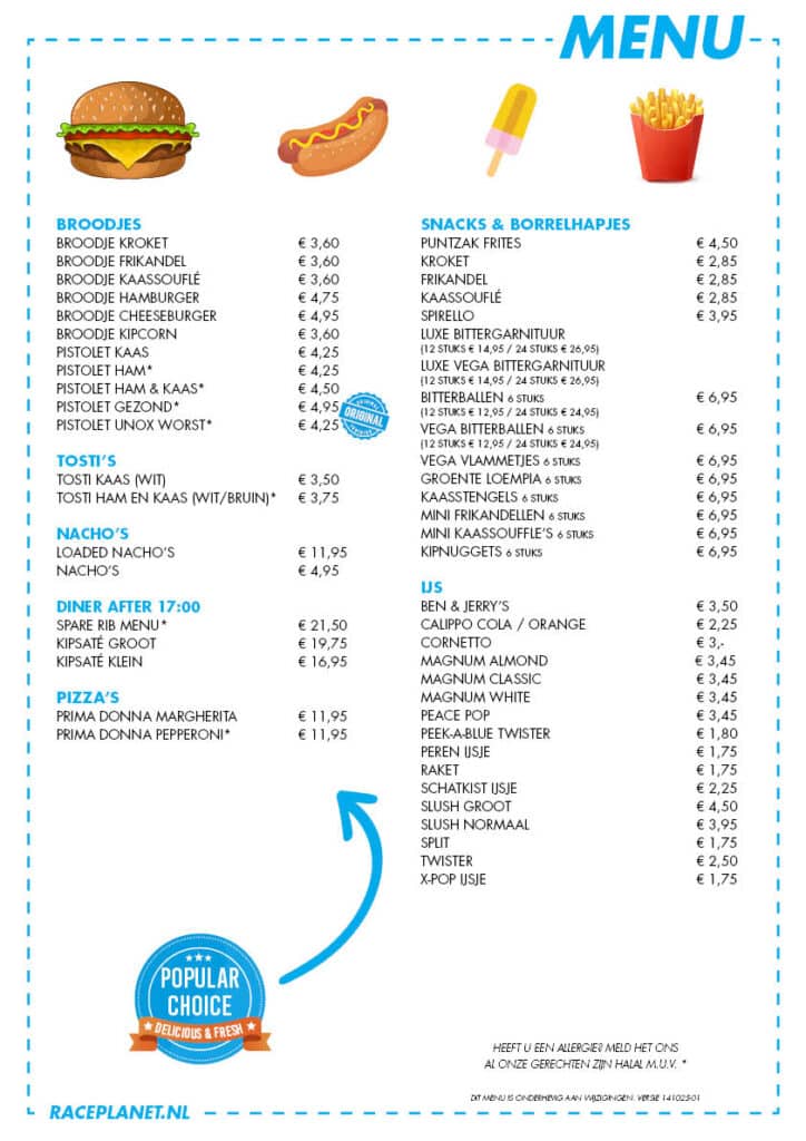Heb je dorst of trek gekregen? Race Planet heeft een uitgebreide bar en keuken. Onder het genot van een hapje en drankje napraten over de activiteiten van zojuist, of lekker even ontspannen borrelen. Organiseer je een vrijgezellenfeest, verjaardagsfeest, een teamuitje of zomaar een dagje uit? Bekijk dan onze menukaart. Neem vrijblijvend contact met ons op om de mogelijkheden door te spreken. Wij hebben voor iedereen een mooie oplossing.
